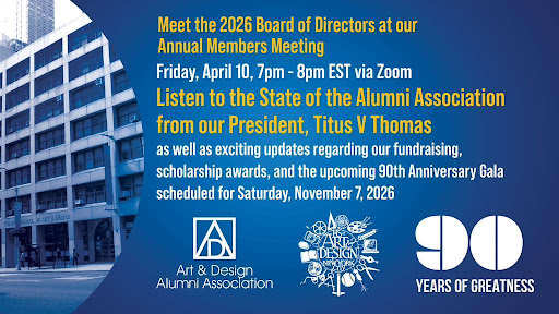 We are thrilled to invite you to the Art and Design Alumni Association’s upcoming Membership Meeting this April — an exclusive gathering for current paid members!