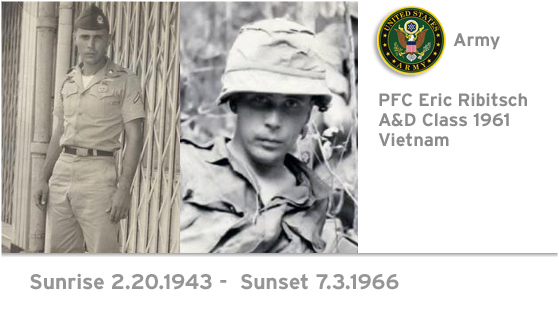 PFC Eric Ribitsch was in the 173rd Airborne Brigade, was killed in action–South Vietnam in 1968 under hostile enemy fire. A sketch of his fiance which he kept was found in his wallet.