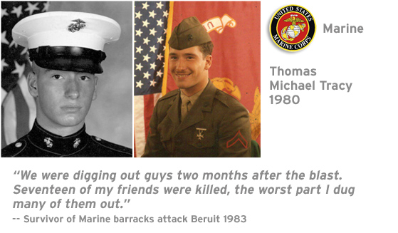 When I graduated from Art and Design in 1980, it seemed like a good portion of my male classmates “disappeared.” Well, not quite. Years later, I was told during our 30th year class reunion in 2010 they literary had to report to boot camp the next day after graduation. Though the United States was no longer in an “active war” during the 1980s, still many of our classmate veterans faced hostile situations abroad prior to the Gulf War. Thomas Michael Tracy was a young marine in Beruit when terrorist blew up the marine barracks.